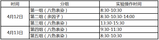 *注:八色表染均為相同實驗內容,請根據自己的時間選擇不同時間段的實驗。