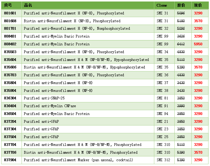 SMI?克隆號系列抗體是BioLegend 旗下品牌 Covance非常重要而知名的產(chǎn)品線,被業(yè)內譽為研究神經(jīng)細胞特異marker的金標準。