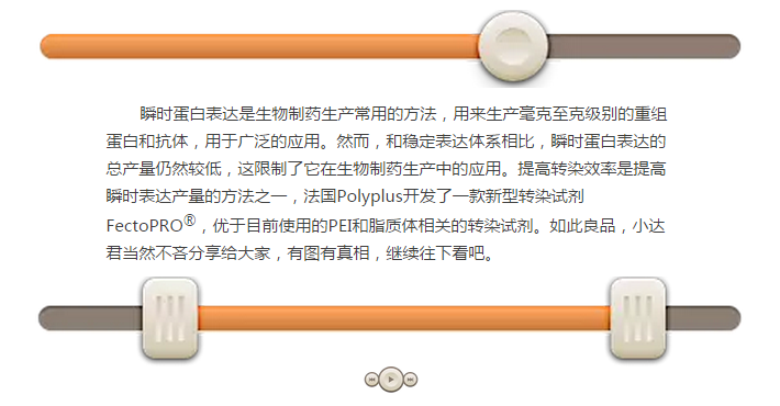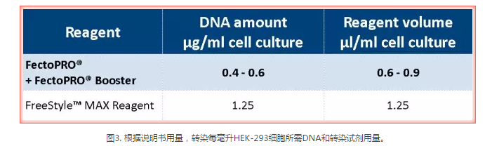 高質(zhì)量質(zhì)粒DNA的制備成本非常高,尤其是在進(jìn)行大規(guī)模蛋白質(zhì)生產(chǎn)時(shí)需要大量的DNA和許多質(zhì)粒。FectoPRO?通過(guò)使用0.4~0.6 μg/106/ml的細(xì)胞培養(yǎng)液將DNA成本縮減了40%~60%,使其成為生物制藥生產(chǎn)流程的一項(xiàng)經(jīng)濟(jì)實(shí)惠的選擇。