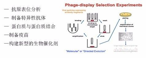是一項篩選技術(shù),將外源多肽或蛋白與噬菌體的衣殼蛋白融合表達(dá),融合蛋白展示在病毒顆粒的表面,而編碼該融合子的DNA則位于病毒粒子內(nèi)。