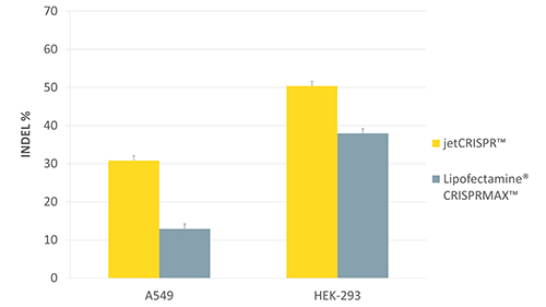 圖4: 在HEK-293細胞中,使用jetCRISPR?進行快速可靠的基因編輯