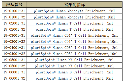 針對少量全血樣本通過淋分液分離PBMC時細胞損失太多或分離效果不好時,這里給大家分享pluriSelect另一口碑不錯用于全血樣本的富集和耗竭產(chǎn)品,只需要1ml全血樣本與對應(yīng)指標的產(chǎn)品按照一定的體積比孵育,然后進行break off離心方式就可以達到對應(yīng)初步的細胞富集和耗竭效果。能保證了后續(xù)要研究細胞的得率和純度,同時獲得的細胞純凈不帶磁珠。適合的樣本類型包括:PBMC, Buffy Coat, Cord Blood, Bone Marrow, Primary Cell Solution。原理非常簡單實用也讓小編腦洞大開。