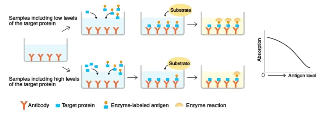 1、樣本中分析物水平較低可以使用哪些方法改進(jìn)檢測?通過增加洗滌次數(shù)和兩次洗滌之間的浸泡時間降低背景。控制測定精確度。例如,在移液時要更加小心和一致,使用干凈的紙巾拍板,以避免污染。增加孵育時間。但這通常也會增加背景,因此檢測靈敏度不一定會增加。如果可以的話,建議濃縮樣本。使用5-PL曲線擬合方法,更準(zhǔn)確地計算標(biāo)準(zhǔn)曲線下端的樣本濃度。在大多數(shù)情況下,樣本可能只含有非常低或無法檢測到的分析物水平。這時無論如何操作和測定,仍然無法檢測到準(zhǔn)確濃度。2、包板應(yīng)如何存放?如果包被完抗體的板不能立即使用,應(yīng)將其密封并在4°C儲存過夜。3、為什么使用同一克隆號的捕獲抗體和檢測抗體建立ELISA實(shí)驗沒有成功?如果使用相同的克隆抗體進(jìn)行檢測和捕獲,則抗原表位可能已經(jīng)被其中一種抗體占據(jù)并抑制另一抗體結(jié)合。建議捕獲和檢測抗體選擇不同的克隆號。4、應(yīng)該使用哪種包被緩沖液?一般來說,建議使用PBS(pH 7.4)或碳酸鹽緩沖液(pH 9.5)。確切的包被緩沖液可能取決于要檢測的細(xì)胞因子。5、為什么細(xì)胞因子流式染色與ELISA測定之間沒有良好的相關(guān)性?流式細(xì)胞術(shù)檢測的胞內(nèi)細(xì)胞因子代表檢測時的陽性細(xì)胞比例,ELISA代表細(xì)胞因子隨時間的積累量。可能少量的陽性細(xì)胞在一段時間之后會分泌大量的細(xì)胞因子于培養(yǎng)上清中,導(dǎo)致ELISA的結(jié)果與胞內(nèi)因子染色的結(jié)果不一致6、可以使用細(xì)胞培養(yǎng)板進(jìn)行ELISA實(shí)驗嗎?不可以。細(xì)胞培養(yǎng)板設(shè)計用于達(dá)到細(xì)胞培養(yǎng)目的,通常不具有高蛋白結(jié)合能力。對于ELISA,建議使用具有高蛋白結(jié)合能力的板,例如 Nunc Maxisorp?酶標(biāo)板。7、血清等樣本可以重復(fù)使用嗎?不建議重復(fù)使用樣本。為了獲得準(zhǔn)確的結(jié)果,樣本應(yīng)分裝儲存,僅供一次性使用。如果重復(fù)使用樣本,需要進(jìn)行額外的驗證實(shí)驗,以確保實(shí)驗準(zhǔn)確性。8、在什么步驟中,可以暫停ELISA實(shí)驗?可以冷凍板子以備后用嗎?最好遵循說明書操作,沒有任何可以暫停實(shí)驗的步驟。但是,如果一定需要暫停實(shí)驗,建議在封閉步驟(包被捕獲抗體后)。可以在孔中加入200 μL封閉緩沖液,并將板在4°C過夜(信號損失最小或沒有)或在-20°C冷凍幾天(可能會對信號產(chǎn)生一些影響)。不建議在第一步進(jìn)行(在4°C用捕獲抗體包被超過16-20小時),因為可能會導(dǎo)致高背景。9、包被捕獲抗體可以超過過夜的時間嗎?通常來說,建議在4°C包被16-20小時。較長的孵育時間可能會增加與板結(jié)合的捕獲抗體量,會增加背景。10、培養(yǎng)基中的酚紅會干擾ELISA測定嗎?不會,培養(yǎng)基中酚紅的吸光度可以在計算時,通過扣除空白孔中本底的吸光度而消去,因此不會干擾ELISA測定的讀數(shù)。11、對于一些ELISA試劑盒,為什么血清樣本需要稀釋?血清樣本稀釋可以盡量減少樣本和標(biāo)準(zhǔn)品之間的基質(zhì)差異,以獲得更加準(zhǔn)確的結(jié)果。12、如何提高ELISA檢測獲得更好的信號和靈敏度?增加孵育時間,但這也可能會增加檢測的背景,同時不改變靈敏度。在孵育步驟中搖動板子。確保標(biāo)準(zhǔn)品在使用前完全溶解。在兩次洗滌之間增加浸泡時間,以進(jìn)一步降低背景。如果可以的話,在450-570 nm處讀板以減去本底。通過控制移液誤差或使用更大體積的洗滌緩沖液洗滌來改善CV值。使用5-PL或4-PL曲線擬合方法,而不是線性曲線擬合。